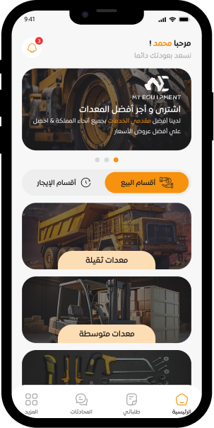 يعرض قسم إحصائيات التطبيق لمحة شاملة عن أداء المنصة وحجم النشاط عليها، مما يعزز ثقة المستخدمين ويُبرز قوة وانتشار التطبيق في قطاع المعدات. يتم تحديث الإحصائيات بشكل دوري لتعكس البيانات الفعلية وحركة الاستخدام داخل التطبيق.