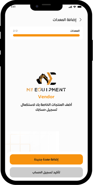 قم بإضافة المعدات أو المنتجات الخاصة بك لإكمال تسجيل حسابك. هذه الخطوة تساعدك على عرض خدماتك وبدء استقبال الطلبات بسهولة.